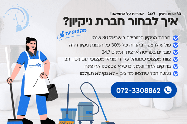 | ניקיון לפני אכלוס | 700-1400 ₪ | כולל חדרים, חלונות, ארונות ומטבח. |